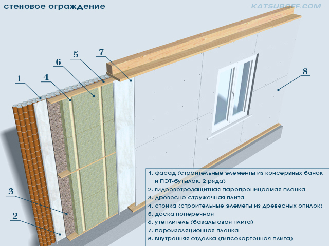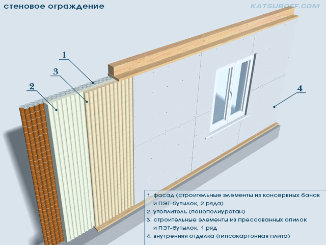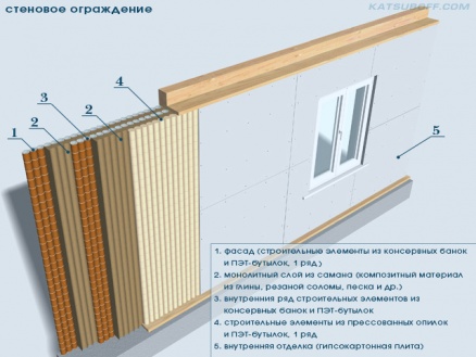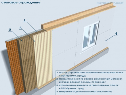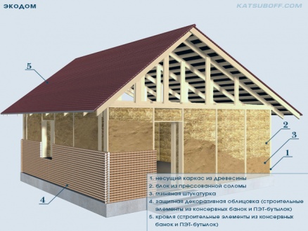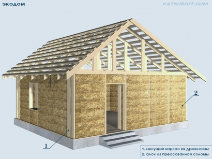 Особенно большие перспективы имеет строительство жилых домов из Katsuboff элементов в сочетании с блоками из прессованной соломы и саманом. За счет Katsuboff элементов значительно повышается несущая способность стен, а также их устойчивость к воздействию атмосферных осадков.